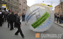 «Группировка Перемен» прокатилась вдоль колонн несогласных всех подвидов, кучковавшихся на Лиговском проспекте перед тем, как разбрестись по Питеру. Огромный зорб с лозунгом «Не нравится в России? Катитесь отсюда!» от «Группировки Перемен» стал главным арт-объектом первомайских «хождений» в Петербурге», — говорится в заявлении активистов этой организации.